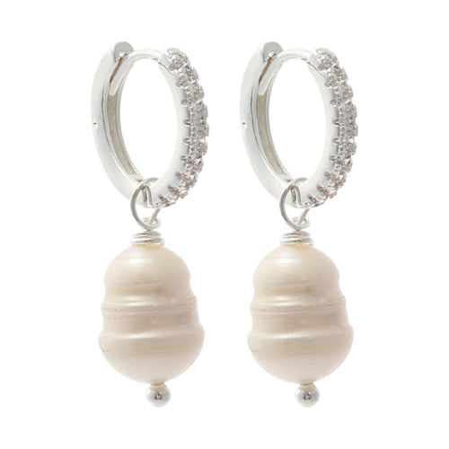 Merx Perla Rhodium Oblong Earrings with Cubic Zirconia Accents