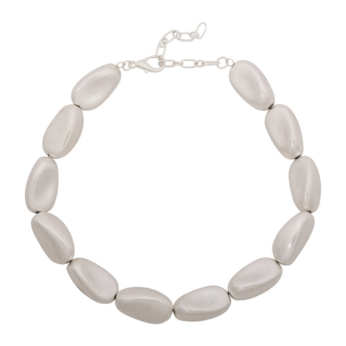 Merx Fashion Shiny Silver, Gold & Pearl Beaded Short Necklace