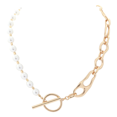 Merx Fashion Shiny Silver or Shiny Gold Necklace with Pearl Detail