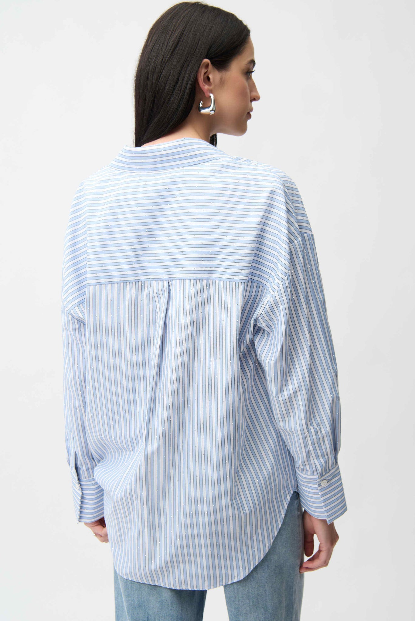Crafted from lightweight Tencel, this woven striped blouse features a boxy silhouette and hidden button placket. All-over iron-on details add a unique touch to this casual, unlined piece. Fabric composition: 50% Polyester, 50% Tencel