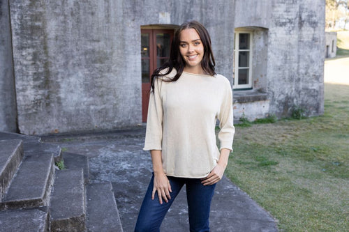Orientique Boat Neck 3/4 Sleeve Cotton Sweater