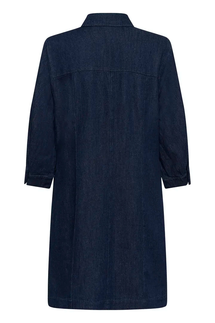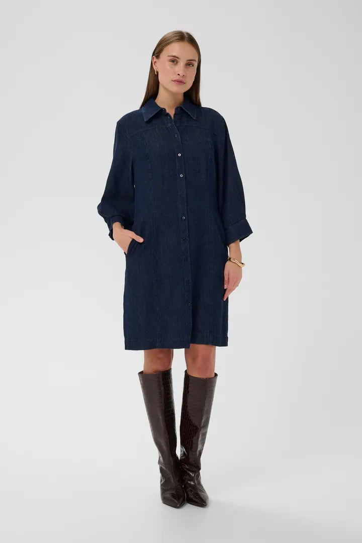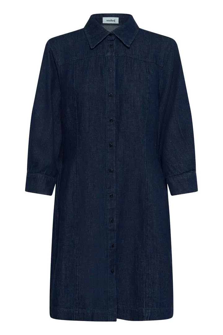 Effortlessly stylish and endlessly versatile, this dark blue denim dress by Soaked in Luxury is a timeless wardrobe staple. Designed with a classic collar and full button-front closure, it features a mid-thigh legnth and relaxed long sleeves finished with button cuffs for an easy, comfortable fit. The non-fitted sleeves add a modern, laid-back feel while maintaining a structured silhouette. Perfect for everyday wear, this denim dress can be styled on its own, belted for shape, or layered over tights and boots.