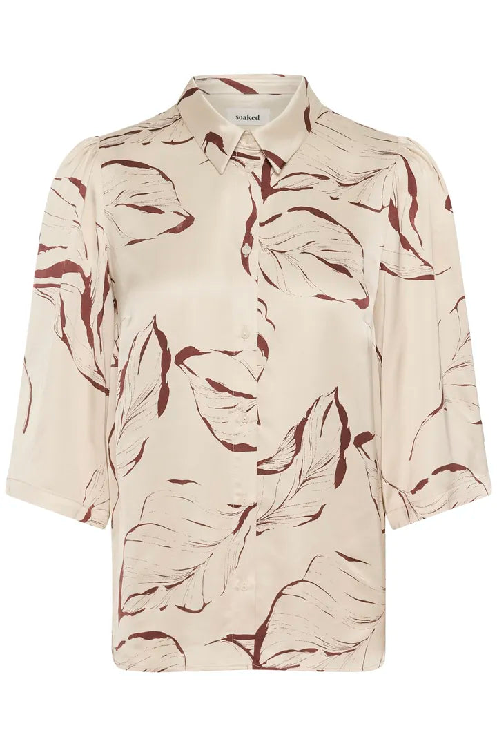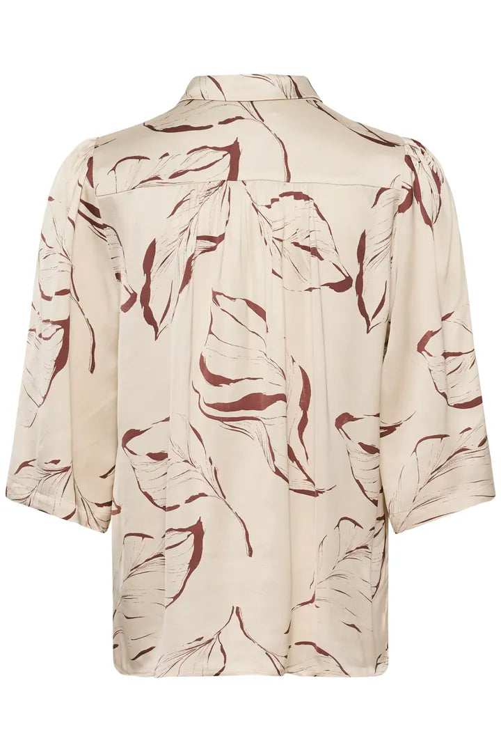 This shirt offers a fresh, natural take on everyday style. Designed with a classic collared neckline and button-up front, it features a soft oatmeal base accented wiht a subtle leaf print for an effortless modern look. The lightweight fabric drapes beautifully, making it comfortable and easy to wear through the season. Made from a blend of sustainable viscose, this shirt feels soft against the skin while offering a more eco-conscious choice.