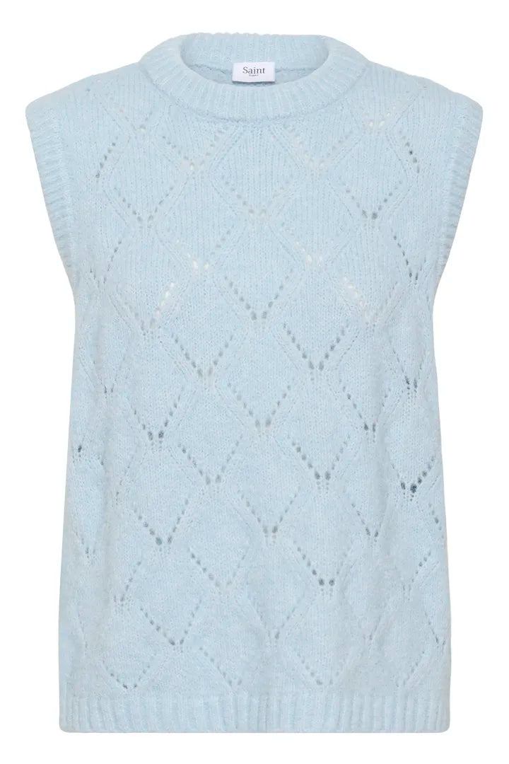The Saint Tropez PavaaniSZ Vest features an open knit design, allowing it to be worn layered over other garments or as a standalone shirt. This versatility provides enhanced comfort and style, making it suitable for various occasions and enabling easy transitions between casual and formal wear.