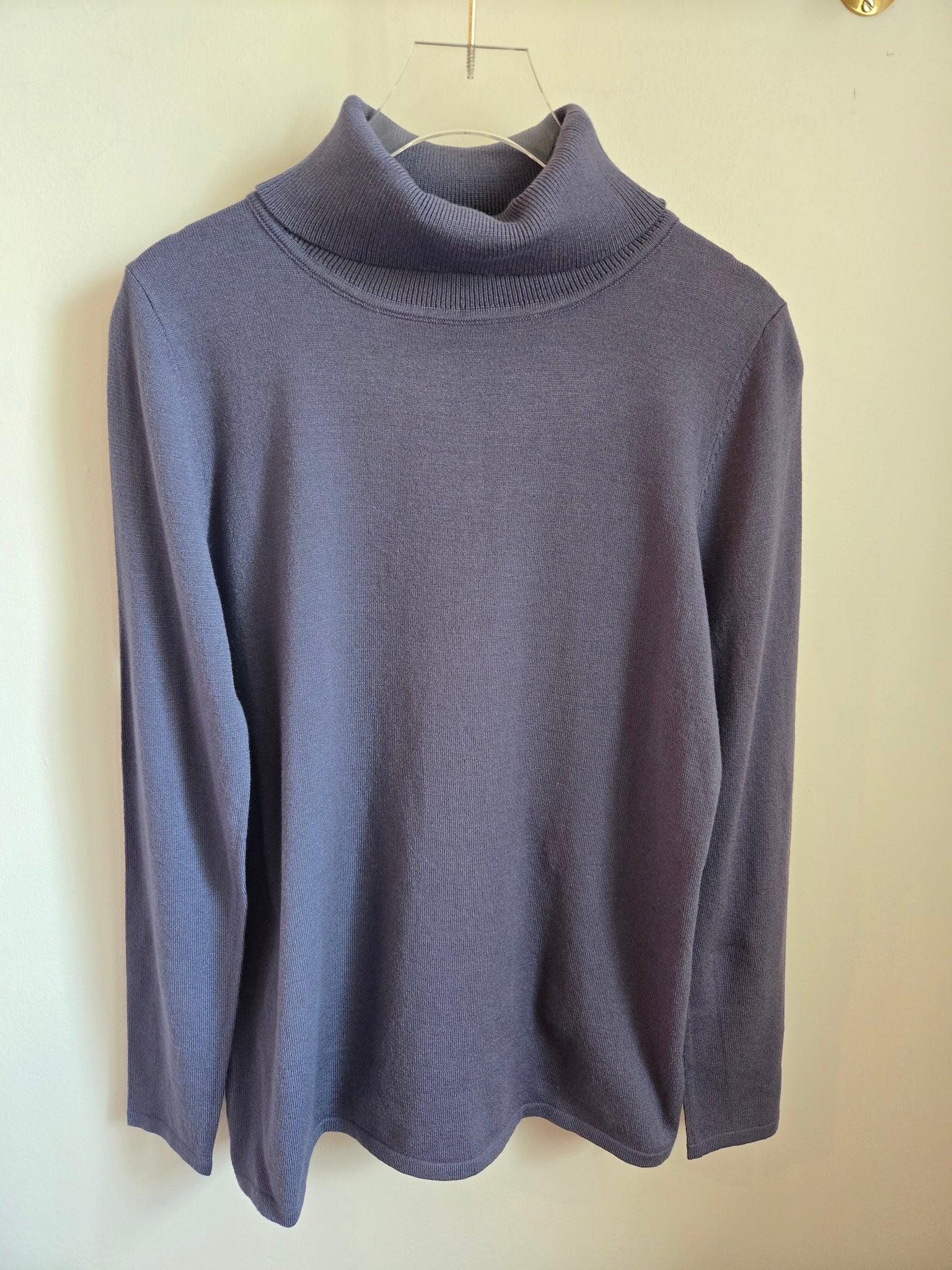 DKR & Co long sleeve fine gauge turtleneck sweater. Fabric composition: 48% viscose, 28% polyester & 24% nylon.