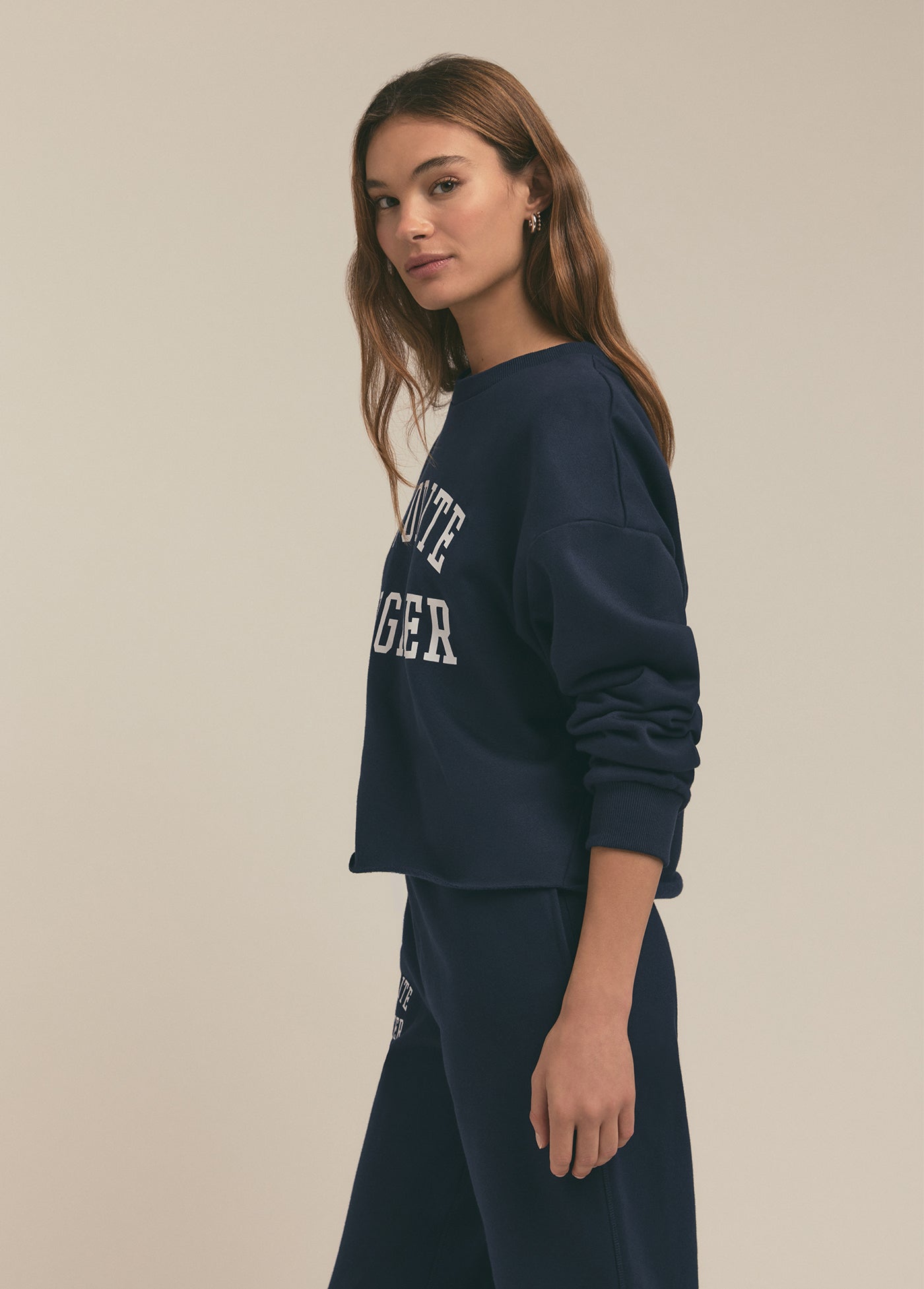 Give it the old college try with our cropped collegiate sweatshirt. With the drop shoulder and relaxed fit, this collegiate classic will go to the head of the class (and your closet). CF length from HPS: 21"