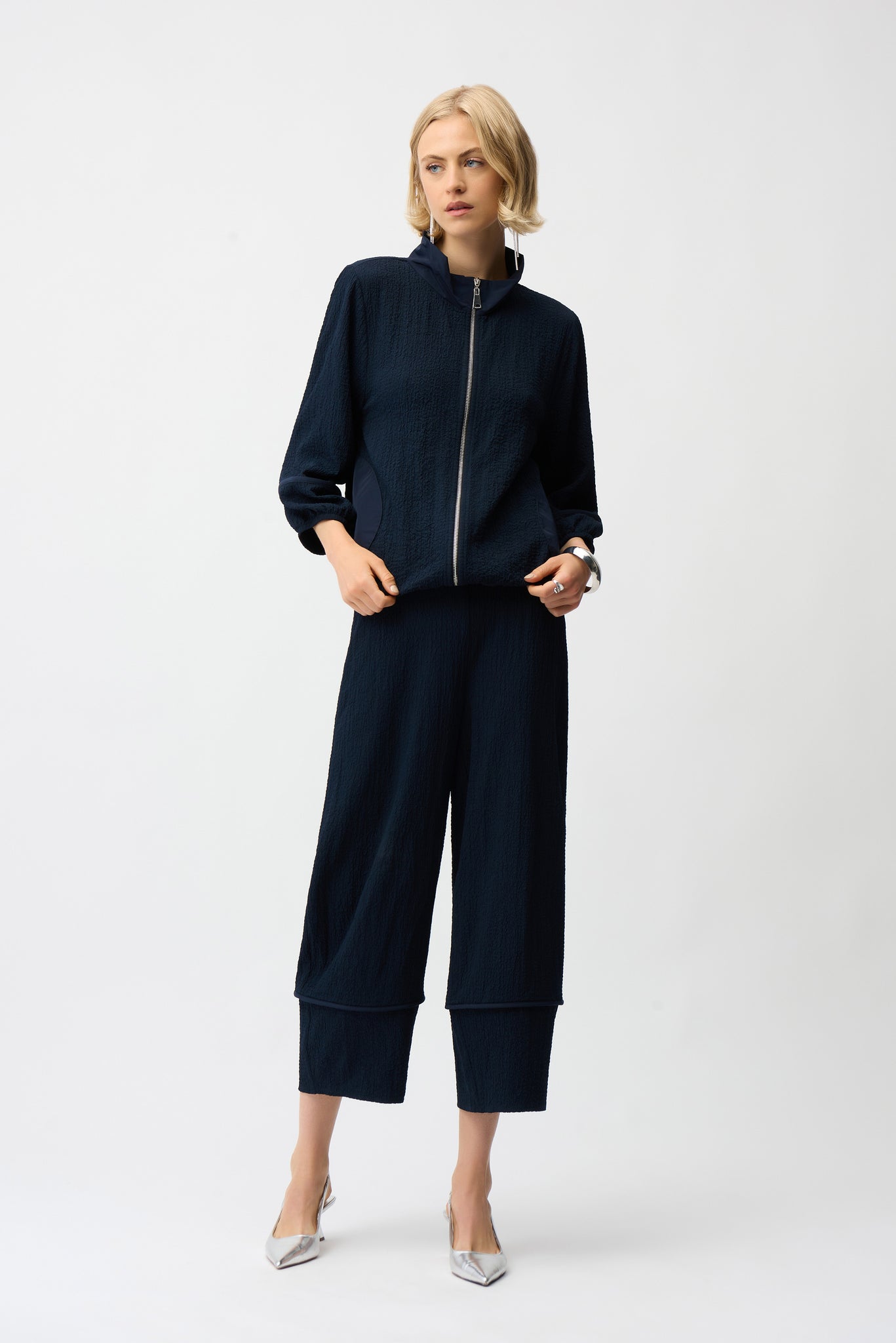 Relaxed with a sculptural twist, these pull-on seersucker pants feature a soft balloon leg, comfortable elastic waistband, and a crisp texture that holds its shape beautifully. Fabric composition: 56% Polyester, 2% Spandex, 42% Viscose rayon